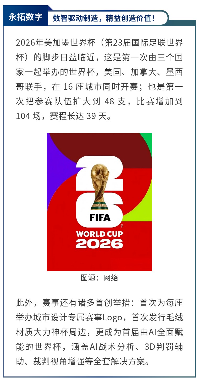 据FIFA官方披露,本届世界杯总收入预计达110亿美元,赞助席位已提前售罄。世界杯是全球顶级赛事,其红利和普通商业热点有本质区别。核心有三大特征:刚性需求、集中爆发、全周期覆盖。从场馆基建、物资运输,到赛事运营、消费流通,每个环节都藏着海量市场需求。